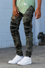 SMOCKING CAMOUFLAGE FAUX PATCHED WHITE PAINT SPLATTER RIPPED JEANS