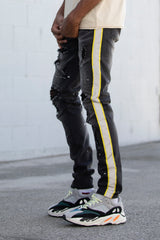 MOTO BLACK skinny mens jeans With YELLOW SAFETY reflector TAPE
