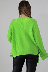 This knit braid sweater features, a stretchy fabric, round neckline, long sleeves, finished with a side self tie strap closure.