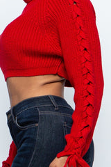 TURTLENECK LACE UP SLEEVE CROP SWEATER